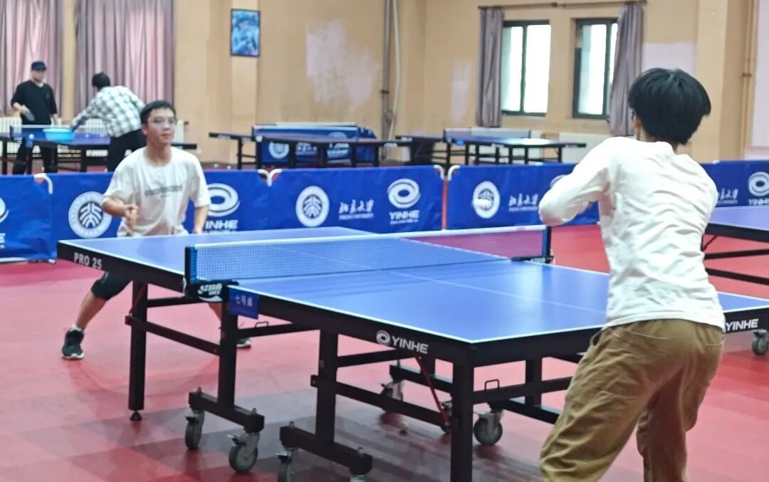 比赛首先进行的是男子单打项目。选手们首先经过小组内部的单循环比赛,通过每一盘激烈的竞争来角逐通往淘汰赛的门票。每位选手都竭尽全力,展示自己的水平与风采。选手们一路敢打敢拼,既切磋了球技,也收获了友谊。击球声与欢笑声交织,这便是比赛的意义所在吧!